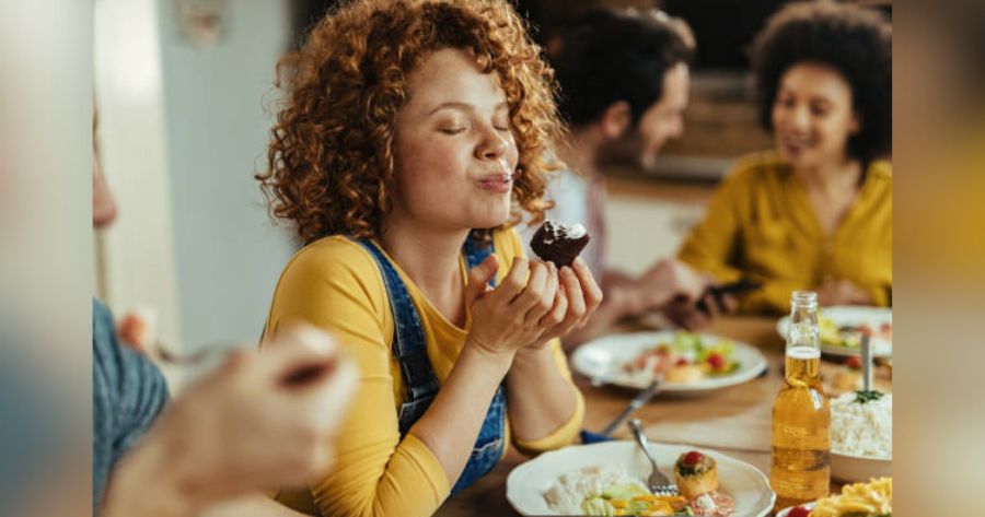 C: I eat something delicious